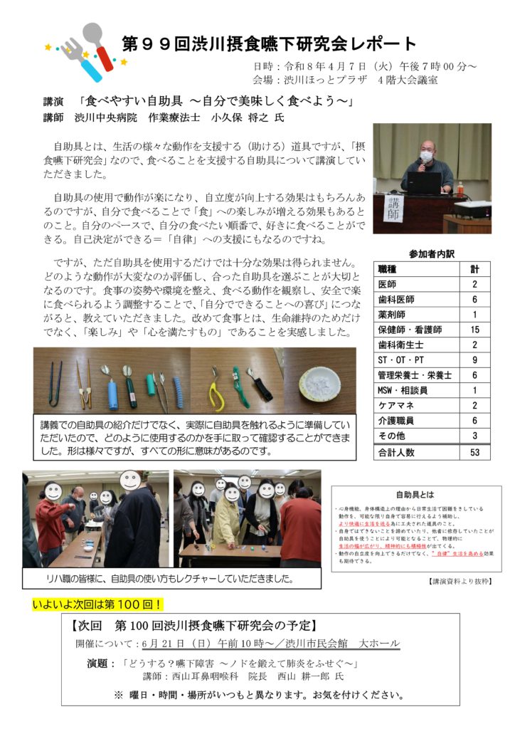 【活動レポート】 第99回 渋川摂食嚥下研究会