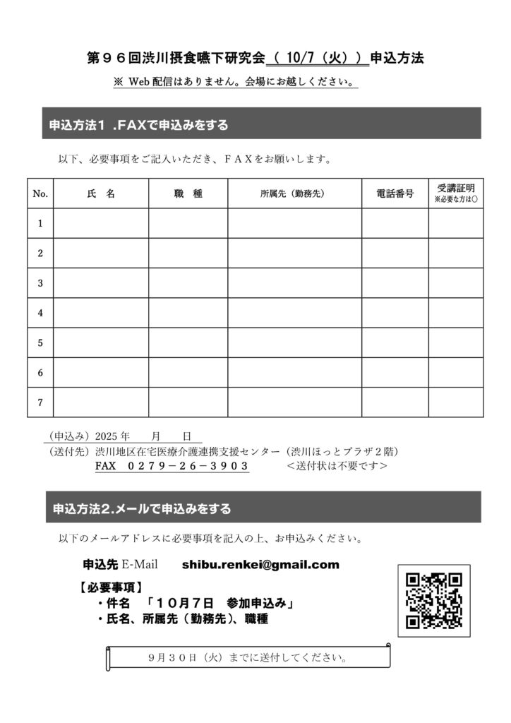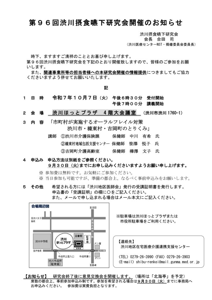 第96回渋川摂食嚥下研究会のご案内 [令和7年10月7日開催]